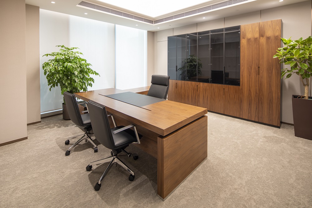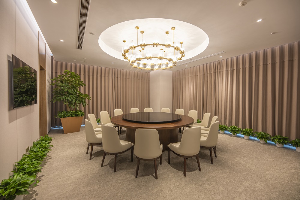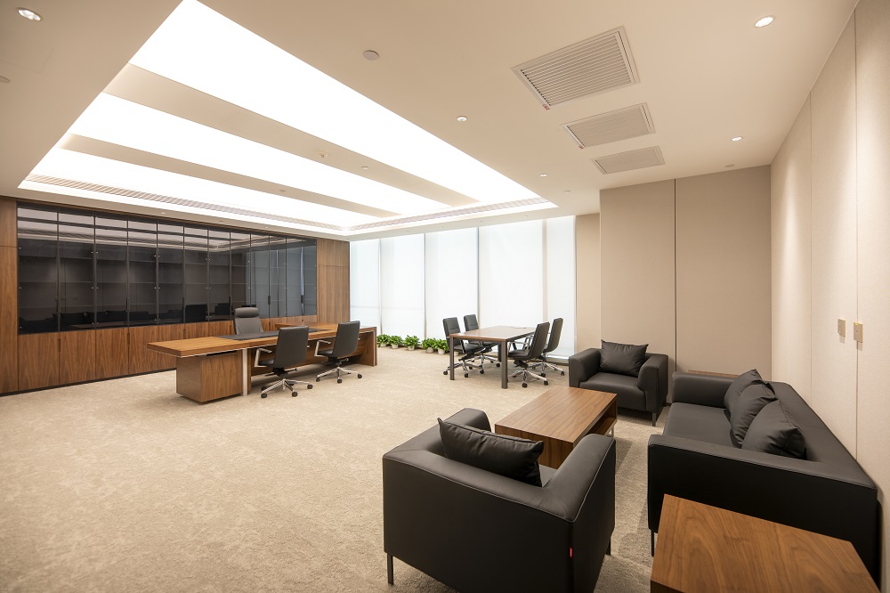 本次改造根據(jù)使用單位的需求,在維持建筑外立面和室外景觀的前提下,對原有建筑進(jìn)行了平面重新布局及裝飾裝修,并根據(jù)新的使用功能對機電系統(tǒng)進(jìn)行了調(diào)整。改造后的建筑滿足現(xiàn)行的建筑標(biāo)準(zhǔn)規(guī)范,并滿足使用方的現(xiàn)代辦公需求。以“一級央企、國內(nèi)一流、具有國際影響力”的大國企業(yè)總部形象服務(wù)全國并面向國際舞臺,所以重點打造莊重、現(xiàn)代、統(tǒng)一、大氣、低調(diào)、品質(zhì)的空間特點,使辦公空間代表大國形象、展示央企文化;延續(xù)傳統(tǒng)國企表現(xiàn)出的典型特征,提升內(nèi)部空間整體品質(zhì)。圍繞設(shè)計理念構(gòu)思方案,把握規(guī)劃布局的宏觀標(biāo)準(zhǔn),定位企業(yè)形象,提煉設(shè)計手法,營造空間氛圍;對大廳、會議、報告廳、會客、餐廳、辦公等重點空間深化設(shè)計匹配一級央企的總部形象。