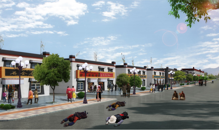 更新:對(duì)于規(guī)劃地塊內(nèi)的沿街建筑,質(zhì)量較好的,但風(fēng)貌較為普通的現(xiàn)狀建筑,規(guī)劃予以更新。主要表現(xiàn)為外立面的重新裝飾,融入藏式風(fēng)格,以及新功能的植入。重建:對(duì)于規(guī)劃用地范圍內(nèi)的質(zhì)量較差的建筑、危房、以及影響風(fēng)貌但難以處理的建筑,規(guī)劃予以拆除并重新建設(shè)。新建:位于江孜南部的地區(qū)處于未開(kāi)發(fā)狀態(tài),規(guī)劃將其作為城市新區(qū)建設(shè)用地,并融入新藏式風(fēng)格。